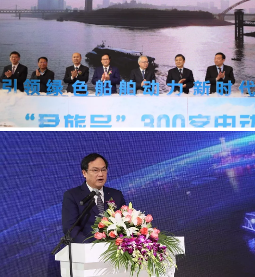 12月3日上午,中国船舶集团有限公司在第20届中国国际海事会展上举办了“君旅号”300客位电动船产品发布会。中国船级社总裁莫鉴辉,中国船舶集团党组副书记、总经理杨金成,党组成员、副总经理冯永强出席发布会。