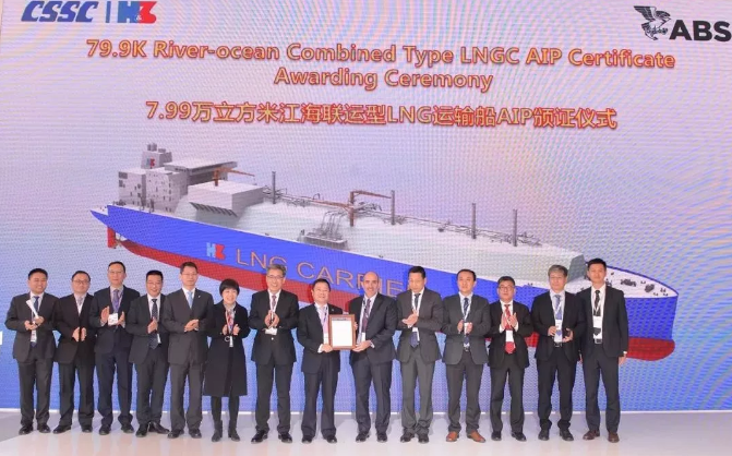 中国船舶集团所属沪东中华造船(集团)有限公司推出了包括LNG-FSRU船、ARC7破冰型LNG船、350MV LNG发电船、V2.0版18600立方米LNG加注船在内的6款新船为中国船舶集团代言。12月4日,沪东中华获得了由美国船级社颁发的全球首例7.99万立方米江海联运型LNG船AiP证书、由DNV GL船级社颁发的全球最大25000TEU集装箱船AiP证书。