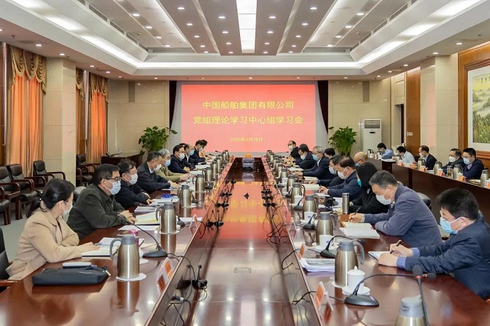 3月18日,中国船舶集团有限公司召开2020年第一次党组理论学习中心组学习会,深入学习贯彻习近平总书记关于统筹推进疫情防控和经济社会发展的系列重要讲话精神和重要指示批示精神,《中国共产党国有企业基层组织工作条例(试行)》和《党委(党组)书记抓基层党建工作述职评议考核办法(试行)》,2020年全国组织部长会议、全国宣传部长会议、全国统战部长会议精神。中国船舶集团党组书记、董事长雷凡培主持会议。中国船舶集团党组成员结合工作实际,分别谈了学习体会。
