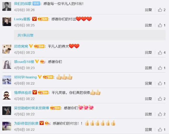 4月6日,人民日报微博对武汉首对新冠疫苗志愿者夫妇张晶、赵威结束医学隔离回家的消息进行了报道,为他们点赞。