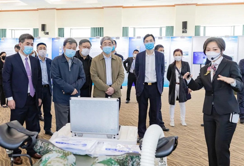 尚勇观看了中国船舶集团宣传片,考察了中国船舶集团部分重点应急救援装备,听取了中国船舶集团应急装备产业发展有关情况和应急传染病方舱医院以及卫勤装备研制情况的汇报。