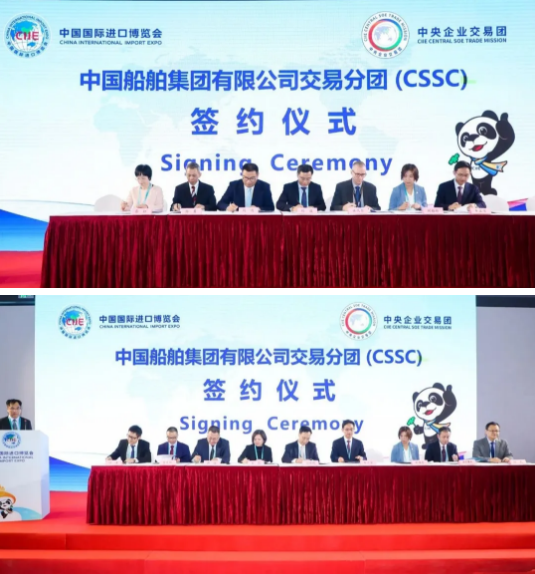 签约仪式上,中国船舶集团所属广船国际股份有限公司、中船黄埔文冲船舶有限公司、沪东重机有限公司、陕西柴油机重工有限公司、中国船舶物资公司、中国船舶贸易有限公司、上海外高桥造船有限公司等7家企业与西门子、ABB、康士伯、瓦锡兰、日本大发、韩国现代等19家合作商,共进行了23个项目签约,签约总金额共计1.14亿美元,涉及轴带发电机、主发电机、主柴油机、阀门遥控系统、柴油机零部件、曲轴等产品。另外,中国船舶集团参加本届进博会专业观众观展活动的人数也较往年有明显提升。