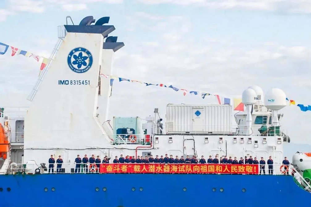 “奋斗者”号搭载“探索一号”赴马里亚纳海沟开展海试任务,并超额完成全部预定试验任务。