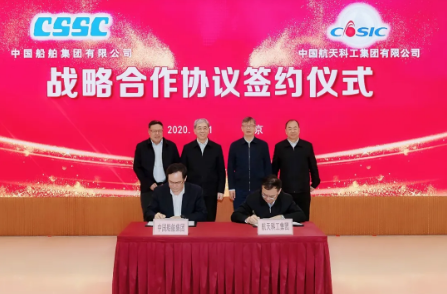 12月1日,中国船舶集团有限公司与中国航天科工集团有限公司在京签署战略合作协议。中国船舶集团党组书记、董事长雷凡培,党组副书记、总经理杨金成,党组成员、副总经理钱建平,中国航天科工党组书记、董事长袁洁,党组副书记、总经理刘石泉,党组成员、副总经理龚波出席签约仪式。杨金成、刘石泉分别代表双方在协议上签字。