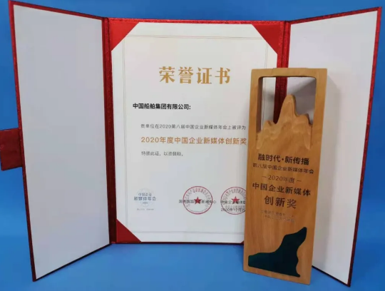 12月22日,由国务院国资委丝袜av新闻 、中央企业媒体联盟联合主办的2020第八届中国企业新媒体年会在北京举行。本届年会主题聚焦“融时代 · 新传播”,中国船舶集团有限公司因在“奋斗者”号融媒体报道中的创新表现,荣获“2020年度中国企业新媒体创新奖”。