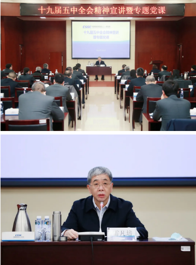 12月22日,中国船舶集团有限公司党组书记、董事长雷凡培到中国船舶集团七〇一所讲党课,宣讲党的十九届五中全会精神,并就学习贯彻落实全会精神、谋划“十四五”高质量发展提出要求。