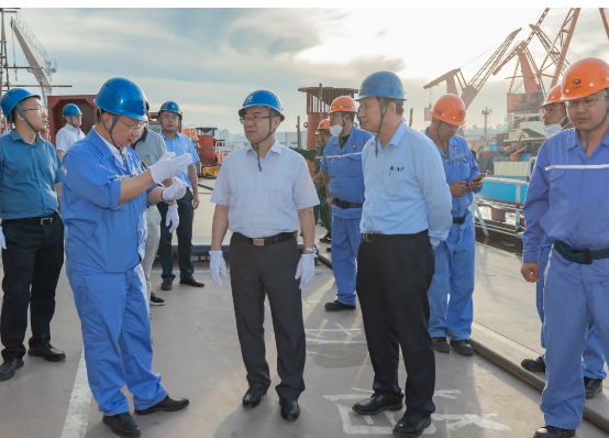 7月21日,工信部党组成员、总工程师田玉龙到中国船舶集团有限公司大连地区成员单位调研指导工作。田玉龙一行先后到中国船舶集团第七六〇研究所、大连船舶重工集团有限公司实地考察了有关试验场和在建船舶,听取了两家单位整体发展情况特别是科技创新方面的工作汇报,并对下一步工作提出要求。