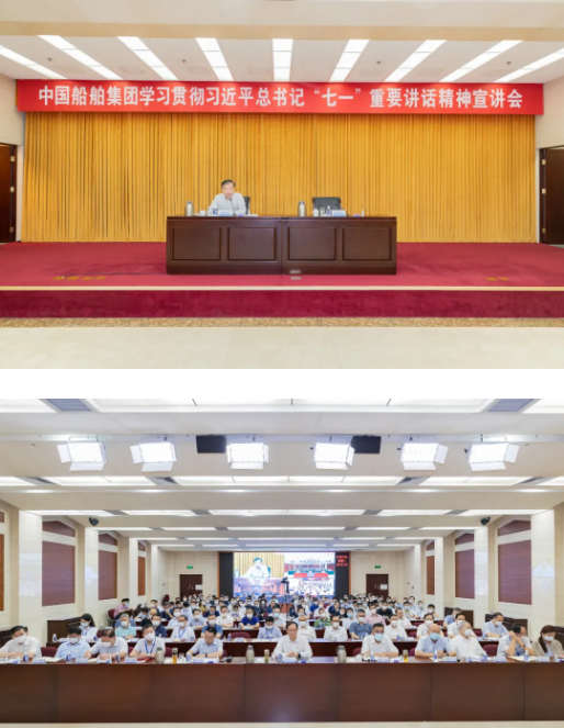 会议强调,习近平总书记“七一”重要讲话是一篇马克思主义纲领性文献,是新时代中国共产党不忘初心、牢记使命的政治宣言,是我们党团结带领人民以史为鉴、开创未来的行动指南。集团公司全体党员、干部要把学习贯彻习近平总书记“七一”重要讲话精神作为当前和今后一个时期的一项重大政治任务,深刻领会和把握讲话的重大意义、丰富内涵、核心要义、实践要求,切实把学习贯彻习近平总书记“七一”重要讲话精神成果转化为全面完成年度各项目标任务、确保“十四五”开好局起好步的具体行动和实际成效,切实推动党史学习教育往深里走、往实里走,以更加饱满的热情、更加昂扬的斗志、更加充足的干劲开启集团公司高质量发展、建设世界一流船舶集团的新征程。