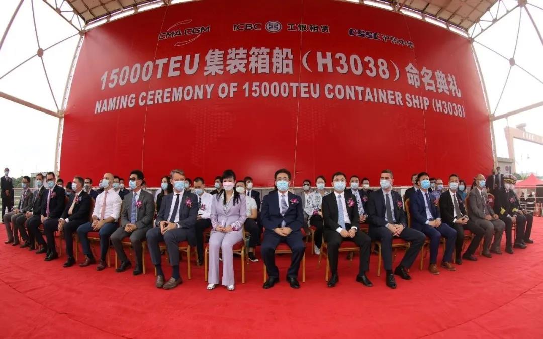 8月27日,由中国船舶集团有限公司旗下沪东中华联合中船贸易为法国达飞海运集团建造的15000TEU超大型集装箱系列船首制船“达飞·和风”号命名交付。这是中法两国船海巨头全面落实2019年中国国家主席习近平和法国总统马克龙见证签署的战略合作框架协议的最新成果。同时,也标志着“CSSC超大型箱船谱系”又添“新丁”,实现了对全球超大型集装箱船发展的引领。