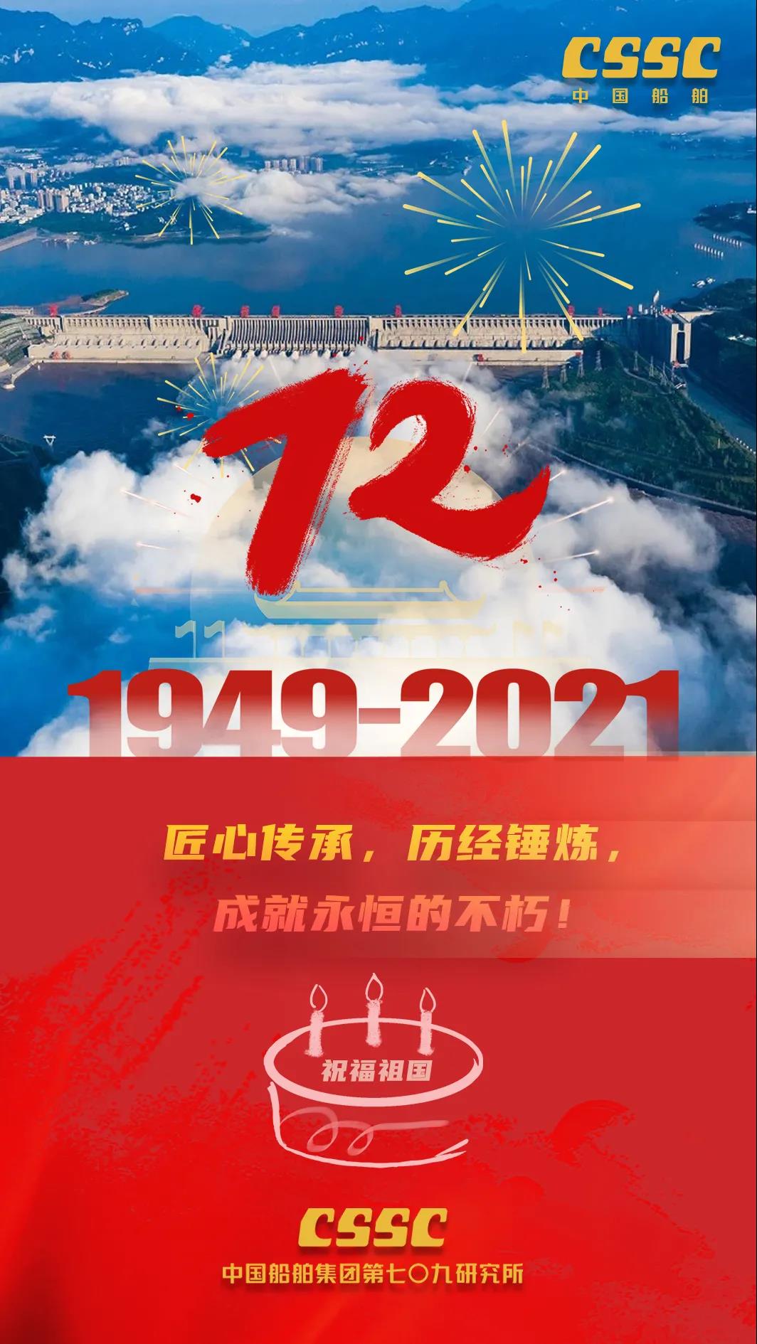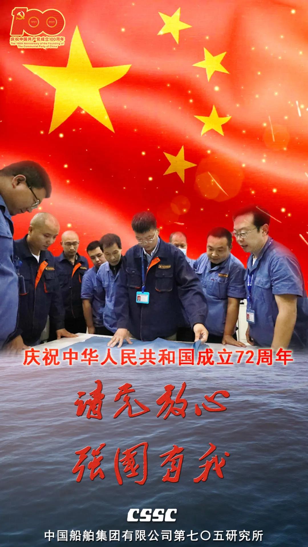 72年筚路蓝缕,72年风雨兼程,正值建党百年之际,恰逢新中国72周年华诞,中国船舶七二六所为祖国献上最真挚的祝福!祝福伟大祖国繁荣昌盛!七二六人将继续用智慧和汗水谱写水声华章,用创新和拼搏开拓新时代新征程,为建设海洋强国贡献磅礴力量!