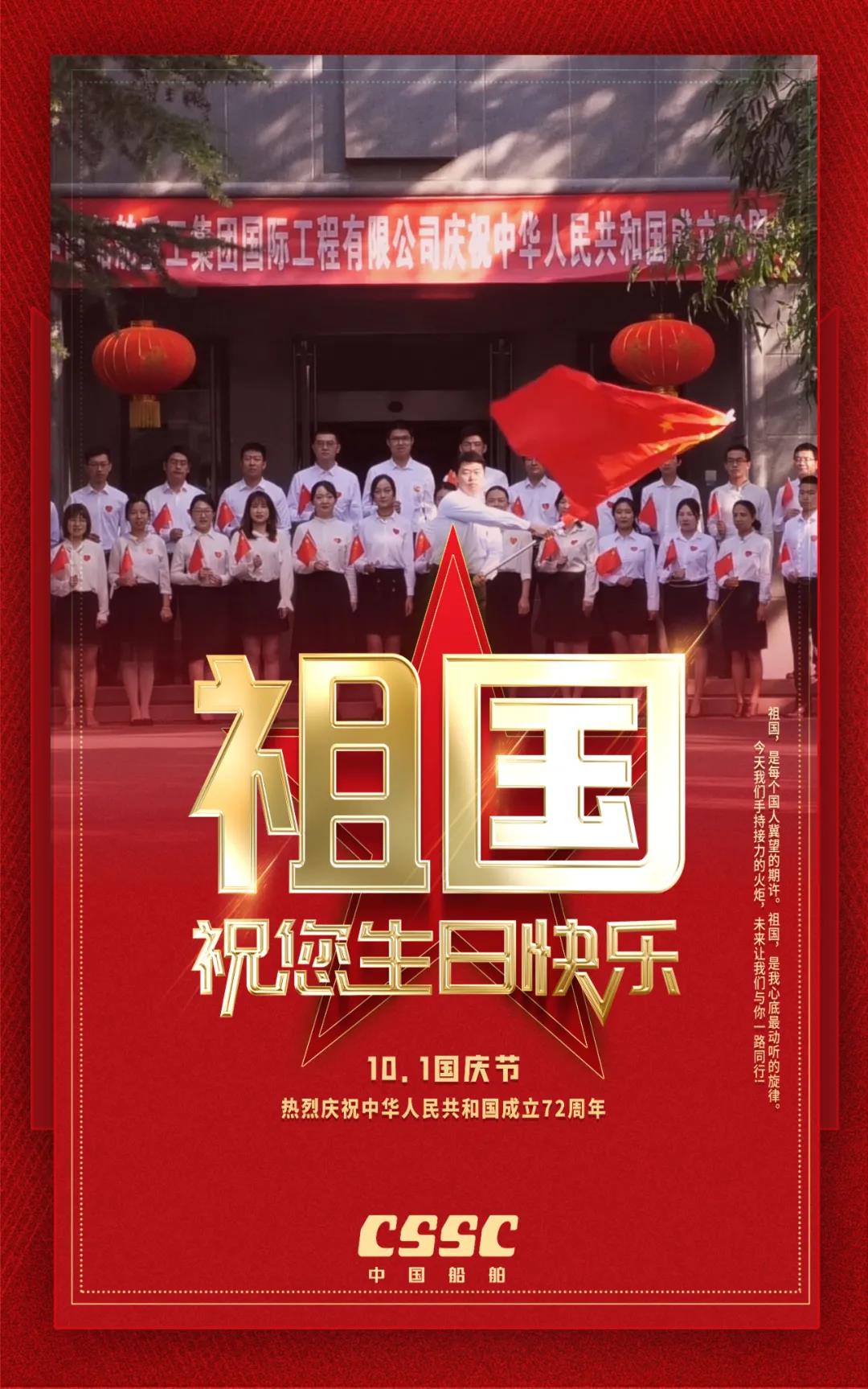 欣望江山千里秀,欢送祖国万年春,中国船舶七〇九所祝福新中国72岁生日快乐,“中国号”巨轮劈波斩浪再创新辉煌!
