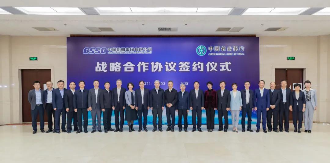 11月3日,中国船舶集团有限公司与中国农业银行股份有限公司在京签署战略合作协议。中国船舶集团党组书记、董事长雷凡培,党组副书记、总经理杨金成,党组成员、总会计师贾海英,农业银行党委书记、董事长谷澍,党委副书记、行长张青松,党委委员、副行长崔勇出席签约仪式。贾海英、崔勇分别代表双方在协议上签字。