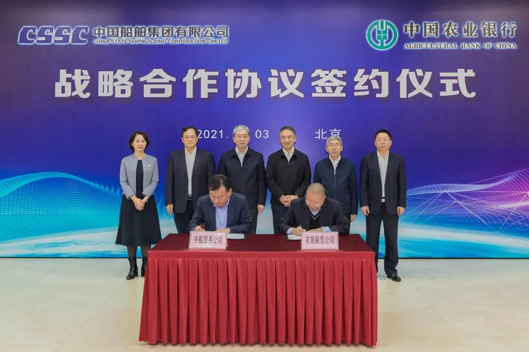 会上,在双方领导的共同见证下,中国船舶集团旗下中船贸易与农业银行农银租赁签署相关合作协议。