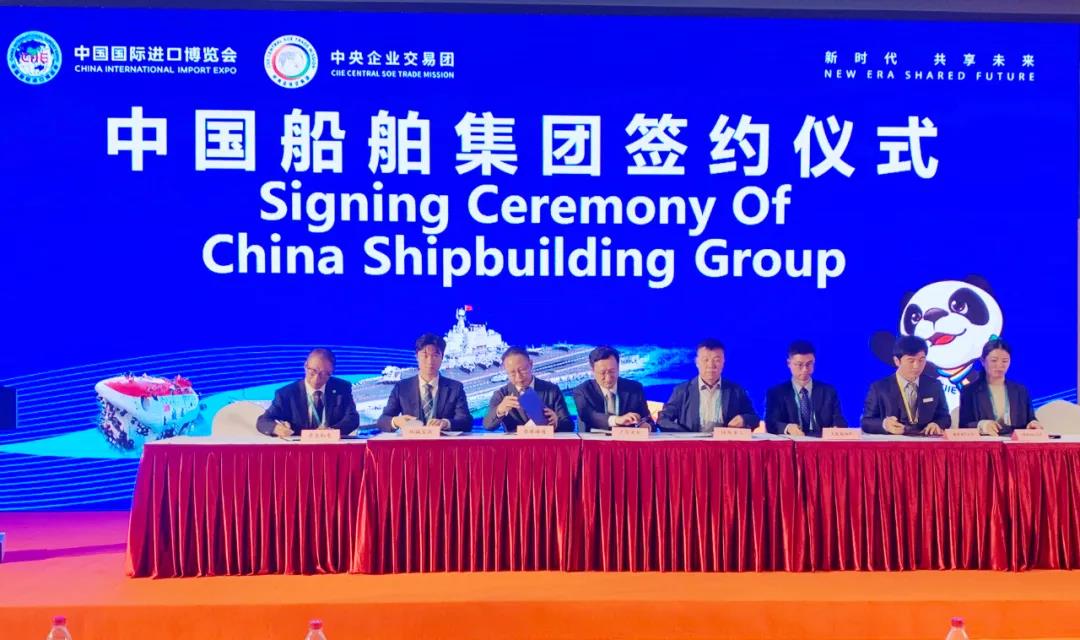 11月5日下午,中国船舶集团举行第四届进博会国资委中央企业交易团集中签约仪式。中国船舶集团旗下7家企业与26 家合作商进行了31个项目签约,签约总金额累计达14 亿人民币,较上届同比增加92.1%。这是中国船舶集团在国务院国资委领导下,深入贯彻和落实习近平总书记关于中国国际进口博览会“不仅要年年办下去,而且要办出水平、办出成效、越办越好”的重要指示精神,积极履行央企责任的重要体现,也是全力构建贸易自由化、经济全球化产业链和供应链新格局的具体实践。中国船舶集团党组成员、副总经理盛纪纲出席并致辞。