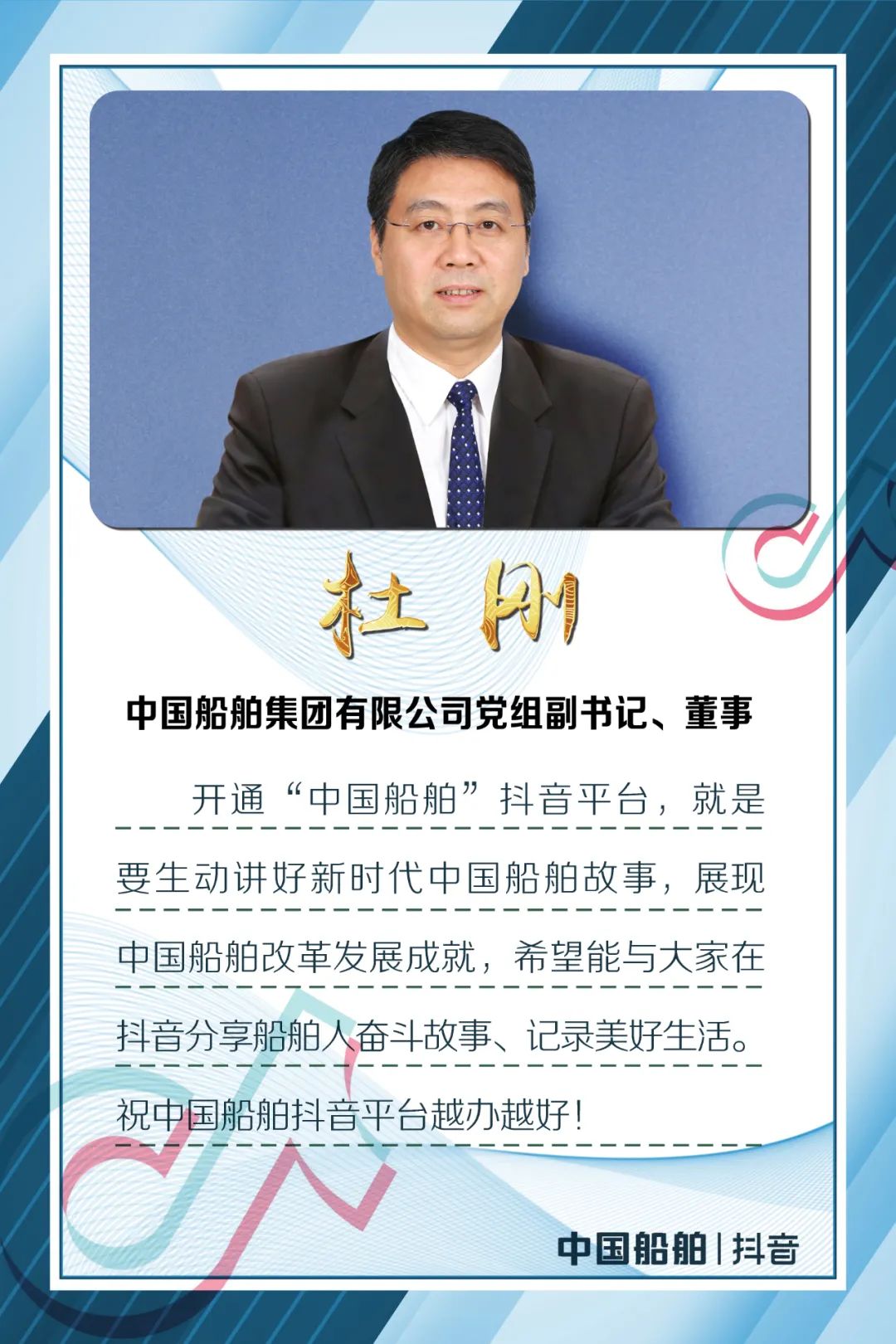 今天,中国船舶官方抖音平台正式开通,是集团公司构建全媒体宣传矩阵的重要举措,是社会各界关心海洋、认识海洋、经略海洋的重要平台,是弘扬军工精神和中国船舶“三大精神”的重要阵地。