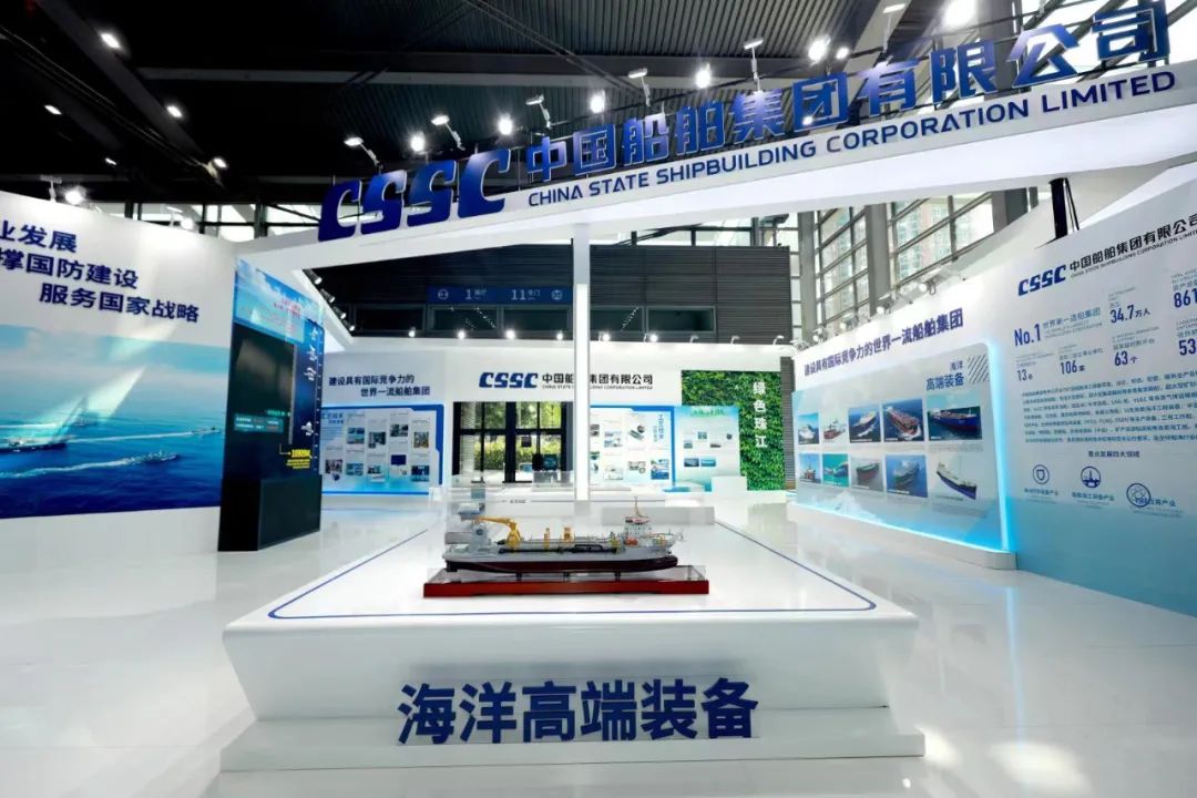 在大会的展示环节,中国船舶集团展台通过集团总体、海洋防务、海洋高端装备、工艺技术创新发展、海洋经济新业态、工匠风采、“奋斗者”号、绿色珠江八个板块,分别展出了7500立方米液态二氧化碳运输船、半潜式全自动现代化三文鱼深海养殖装备、合金钢中间轴在大型油船上的首次应用等55项创新成果,并展示了28位工匠代表的风采。集团公司展台采用开放、通透的布局,突出中国船舶品牌元素,集中展示集团公司立足新发展阶段,贯彻新发展理念,在战略重组后以高质量发展为主题,壮大主业实业、加快推动船海产业向中高端转型发展,以及大力弘扬军工精神和劳模精神、劳动精神、工匠精神,强化自主创新的整体实力和在推动低碳环保、区域经济发展等方面的最新成果。集团公司还通过本届大会“互联网+展会”模式开设的“云展会”,让参观者线上云游中国船舶展台,扩大企业品牌影响力。