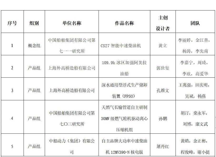 在大会的工业设计和工艺技术比赛环节,中国船舶集团第七一一研究所的CS27智能中速柴油机,中国船舶集团旗下外高桥造船的109.9k冰区加强阿芙拉油船、深水通用型浮式生产储卸装置(FPSO),中国船舶集团第七〇三研究所的天然气长输管道自主研制30MW级燃气轮机驱动离心压缩机组,中国船舶集团旗下中船动力的自主品牌大功率中速柴油机12MV390-N核电版在国防邮电产业2021“长缨杯”工业设计大赛中获奖;中国船舶集团旗下沪东中华的23000TEU双燃料大型集装箱船关键工艺技术研究,中国船舶集团第七一六研究所的船舶管系柔性制造及管控技术研究与应用,外高桥造船的大型豪华邮轮薄板分段翻身工艺研究,中国船舶集团第七一三研究所的高性能长寿命圆弧螺纹锚杆组件在国防邮电产业首届工艺技术创新大赛中获奖。