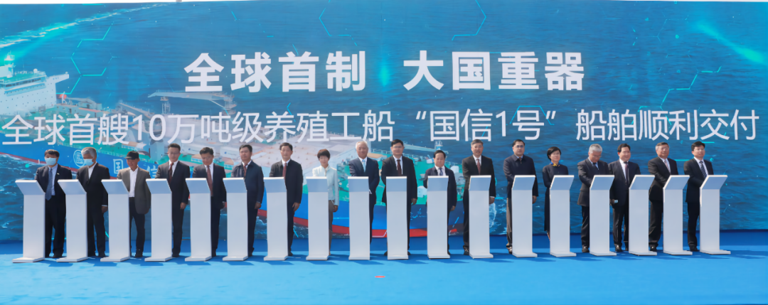 深远海养殖产业发展作为重要使命和责任。2019年,中国船舶集团向中央提出开展深远海养殖示范工程等建议,得到了中央领导批示和国家有关部委的大力支持。本次交付的养殖工船项目,是中国船舶集团落实国家深远海养殖示范工程的重要举措,也是贯彻落实国家海洋强国战略、服务生态文明建设和维护国家粮食安全的具体实践。“国信1号”是全球首艘10万吨级养殖工船,集深海养殖先进经验、现代化环保养殖理念和海洋工程装备尖端技术于一身,跨领域集成创新,实现了全球深远海渔业大型智能养殖装备的重大突破,创造了养殖渔船单船吨位最大、单船养殖规模最大、单舱水体量最高等多项国内外纪录,开创了智慧养殖新模式,其前瞻性、引领性、创新性向世界提供了深远海养殖的“中国方案”。
