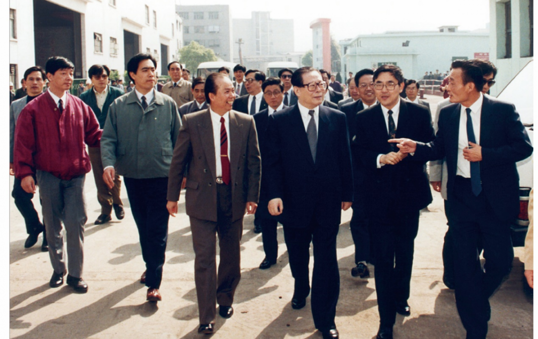 江泽民同志曾先后三次到江南造船视察。图为1994年4月29日,江泽民同志视察江南造船。据相关人士回忆,当时江泽民同志视察江南有两个原因,一是“五一”节快要到了,江泽民同志要看望工人阶级,就选择了江南造船,因为江南造船是产业工人的摇篮;第二个原因是112舰计划当年5月8日前交舰,交舰前江泽民同志要先视察。