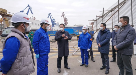 上午,杨金成一行先后来到沪东中华LNG装焊车间、船坞码头和在建舰船,调研检查年度生产任务完成情况和安全生产执行情况,对沪东中华全力应对疫情和极端气候带来的双重挑战,企业上下勠力同心、共克时艰,出色完成2022年度生产经营任务给予充分肯定。杨金成指出,新的一年,沪东中华要进一步加大企业改革、管理创新、转型升级和提质增效的力度,特别是要高标准、高质量、高效率地推进长兴二期工程建设,力争早日投产、早日出船。