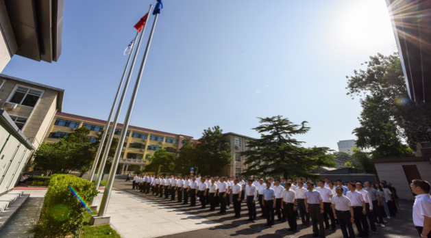 全体干部职工精神焕发,以崇高的敬意,向国旗、向伟大的祖国致敬。