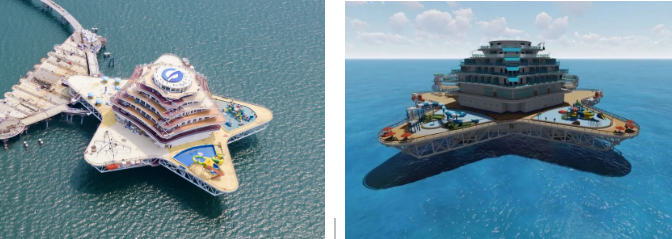 以滨海城市为依托,该方案重点建设需求旺盛、基础好、见效快的“海洋文旅+深海养殖+海上风电+海洋信息管网”4个要素单元,释放旅游、养殖、绿色能源耦合效应。综合体采用模块化设计、区域化协同部署,由滨海向深远海带状辐射,布局建设游轮游艇群、养殖文旅平台、深海养殖产业园、分布式海上风电场及智能微电网、深海移动养殖工厂和海洋信息管网等风渔文旅结合项目。以邮轮游艇连接海上设施,构建海上旅游娱乐交通网,以中小型邮轮航线实现沿海城市综合体间串联,构建沿海城市海上旅游观光带,同时培育邮轮与康养休闲岸海互动融合模式,捕捉、带动、满足多元化潜在消费需求,打造风渔文旅等一二三产业融合新业态,形成沿海蓝色海洋经济带。