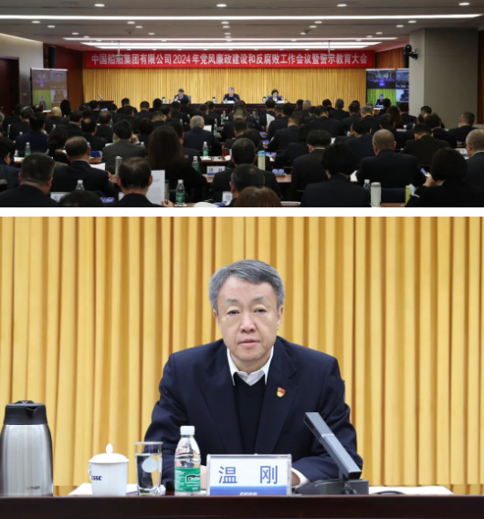 1月23日,中国船舶集团有限公司召开2024年党风廉政建设和反腐败工作会议暨警示教育大会。中国船舶集团党组书记、董事长温刚出席会议并讲话。集团公司党组成员、总会计师贾海英传达了二十届中央纪委三次全会精神,会议由集团公司党组成员、副总经理盛纪纲主持。