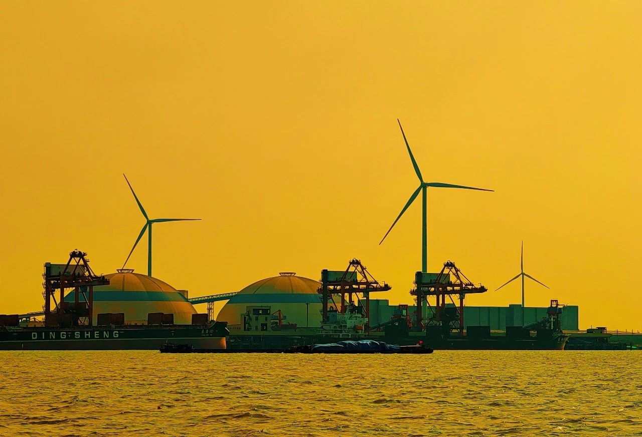 中船澄西建造的风力发电塔塔筒矗立在长江边,为千家万户送去源源不断的绿色能源。
