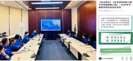 外高桥造船对 “全国节能宣传周”活动作了全面的布置,制定了活动实施计划表,确定重点推进事项。公司进行了以“走实绿色创新之路 开启零碳船舶之旅”为主题的节能宣传周活动动员;召开了“2024年度节能宣传周启动会暨公司动能源工作会议”,对近期公司用能情况开展分析,明确重点管理工作。同时,外高桥造船组织各部门节能环保负责人、主管,深入学习《船舶制造业绿色发展行动纲要(2024-2030年)》和《中国船舶集团有限公司加快绿色发展推进美丽中国建设实施方案》等文件,动员各部门有序推进公司《2024年节能行动实施方案》。