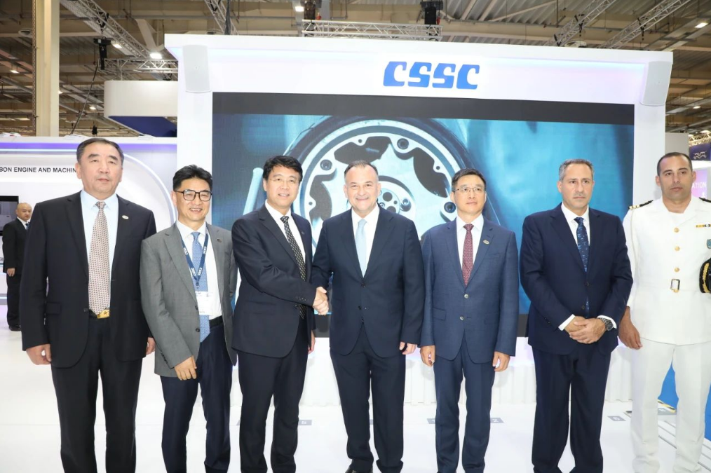此次展会,中国船舶集团携旗下19家成员单位参展,有关成员单位负责人率队赴展会开展重点船海项目经营洽谈并拜访当地和周边国家客户。集团公司以“共赢未来”为参展主题,设置集团总体区、绿色航运解决方案区、低碳环保配套设备区共3个展示区域,重点展示了135500总吨大型邮轮、175000方LNG运输船、24000箱超大型集装箱船、210000吨氨燃料散货船、LNG双燃料VLCC等一系列高技术、高附加值明星产品,以及CPGC-WinGD 10X92DF-M甲醇双燃料发动机、船用碳捕捉系统等全球船东高度关注的绿色低碳配套设备。同时,通过展台上醒目的品牌标识、层级化的品牌体系图、富有感染力的品牌推介视频,首次面向全球客户,立体化展示“中国船舶”品牌及下属企业品牌和产品品牌体系,进一步强化了集团公司品牌形象。