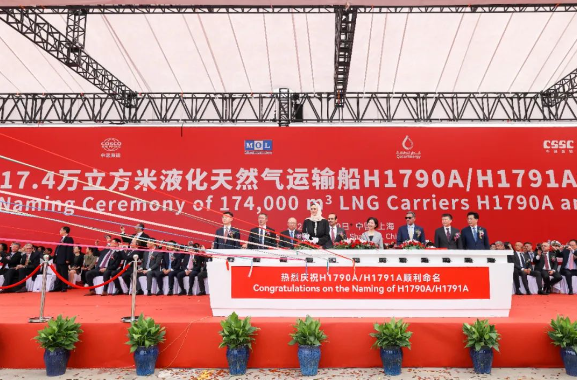 9月10日,中国船舶集团旗下沪东中华联合中船贸易与卡塔尔能源液化天然气公司,为“卡塔尔百船建造计划——卡塔尔北部气田扩能船舶购置项目”17.4万立方米大型LNG运输船首船“雷克斯·蒂勒森”号、2号船“乌姆·古瓦伊琳娜”号举行命名仪式。卡塔尔能源事务国务大臣、卡塔尔能源总裁兼首席执行官萨阿德·谢里达·阿尔卡比,中国船舶集团党组成员、总会计师贾海英等出席命名仪式。