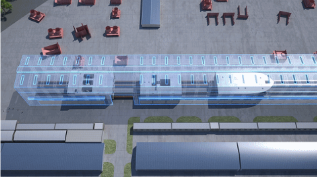 巨型总段“乘坐”移船小车和模块小车登上浮船坞,奔赴室内船台,完成主船体大合拢。