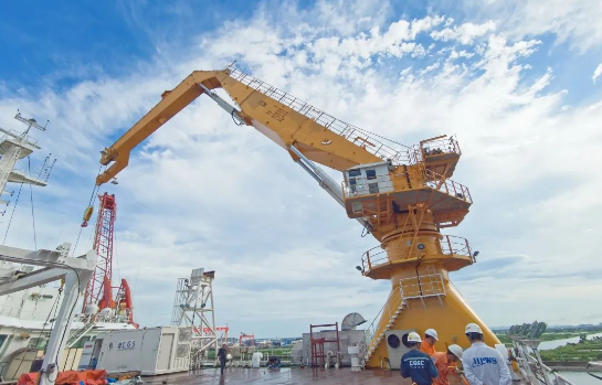 中国船舶集团旗下华南船机为“梦想”号配套重要作业设备——50吨折臂起重机,助力“梦想”起航。