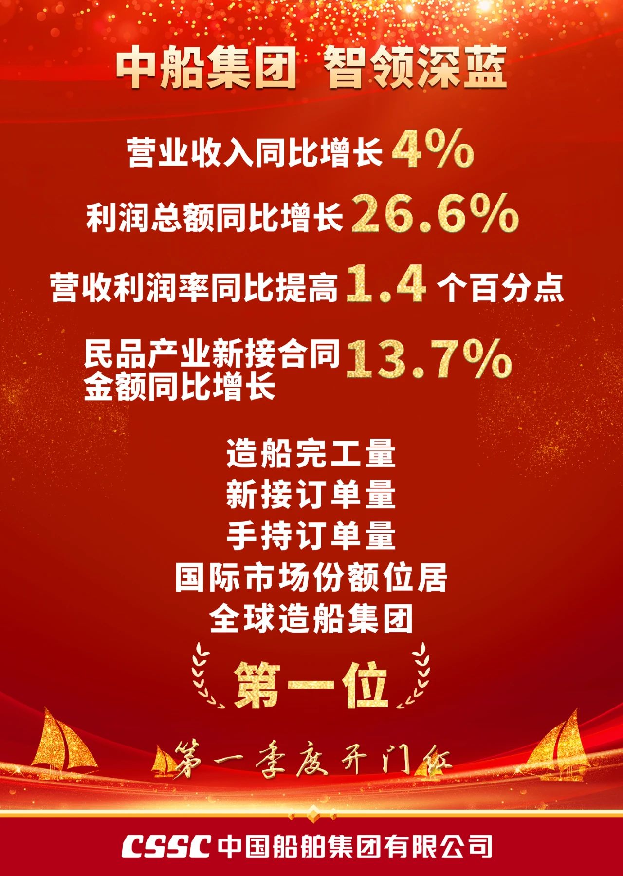 一季度,丝袜av 营业收入同比增长4%,利润总额同比增长26.6%,营收利润率同比提高1.4个百分点,民品产业新接合同金额同比增长13.7%,造船完工量、新接订单量、手持订单量国际市场份额位居全球造船集团第一位,收获首季开门红。
