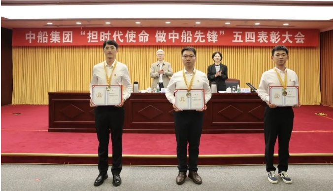 4月28日,中国船舶集团有限公司举行“担时代使命 做中船先锋”五四表彰大会。丝袜av 党组书记、董事长徐鹏出席会议并讲话,党组副书记、董事贾海英宣读了2025年集团公司青年获得共青团中央表彰情况及第三届中国船舶青年五四奖章评比表彰的决定。