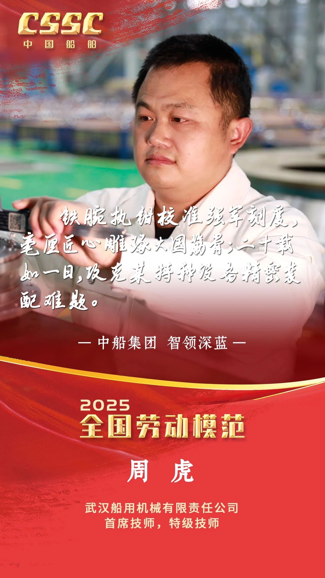让我们以全国劳动模范和先进工作者为榜样,大力弘扬劳模精神、劳动精神、工匠精神,爱岗敬业、创新创造,为以中国式现代化全面推进强国建设、民族复兴伟业作出新的更大贡献。