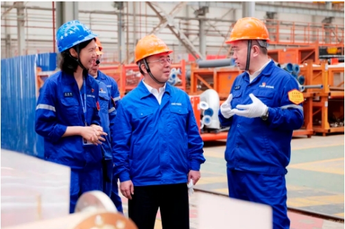 王国强深入科研生产一线,察看了船坞、智能生产线、重点实验室和产品,进行了安全生产检查,与一线科研人员、员工进行深入交流,听取了生产经营、科技研发、人才培养、党的建设等情况汇报。