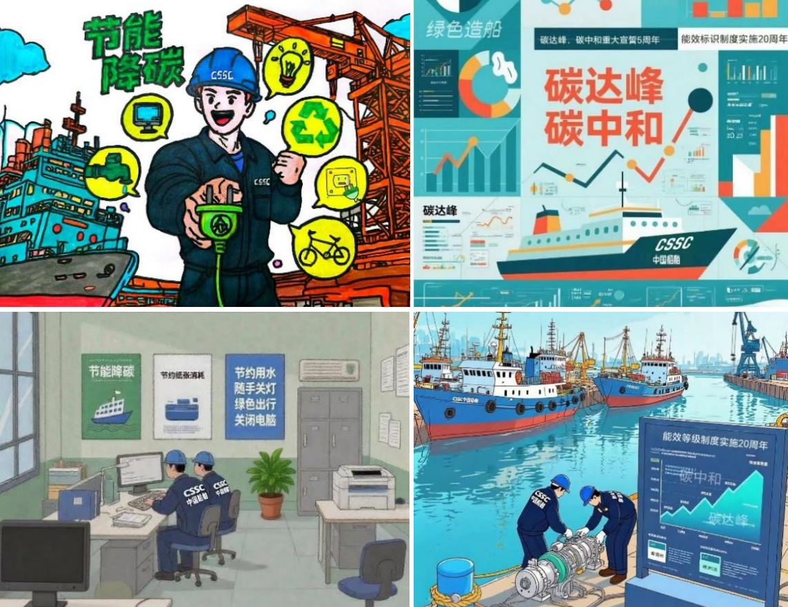 宣布碳达峰碳中和目标5周年、能效标识制度实施20周年等关键节点,聚焦节能降碳工作重点,在全公司范围内开展了一场别开生面的美术作品征集活动。活动共收到来自不同部门、不同岗位报送的百余份美术作品。作品不仅内容生动形象、新颖独特,更以艺术的感染力激发了全体员工对节能降碳工作的关注与热情,充分体现了渤海造船深厚的节能文化底蕴和鲜明的船舶行业特色,全方位展现了渤海造船在绿色发展道路上的坚定决心与卓越成果。