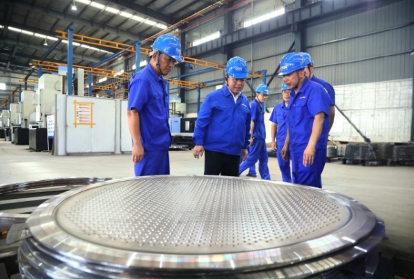 王国强深入科研生产一线,调研了相关车间、实验室、劳模创新工作室,察看了智能制造中心、重点产品、相关技术进展;慰问了劳模工匠、一线员工,与他们就现场管理看板优化、工艺改善等交流互动,勉励他们健康生活、快乐工作,叮嘱相关单位负责人要做好防暑降温工作;听取了相关二级管理单位生产经营、深化改革、科技创新、人才培养、党的建设等方面情况汇报。