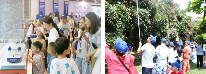 广船国际举办“工厂·家庭心连心”员工家属开放日活动。93名员工家属走进企业,现场了解造船人筑梦深蓝的火热场景。本次活动设置了保学护航、船模搭建、采摘龙眼等多个环节,既有亲子活动,又能寓教于乐。大家在触摸海洋强国脉搏中增进理解,在共享发展成果中凝聚共识。员工家属通过参观公司展厅和观看视频等形式,了解中国船舶工业发展史,为员工坚守在海洋强国建设岗位上而感到骄傲和自豪。