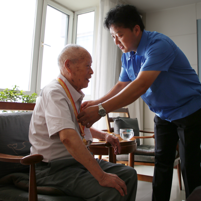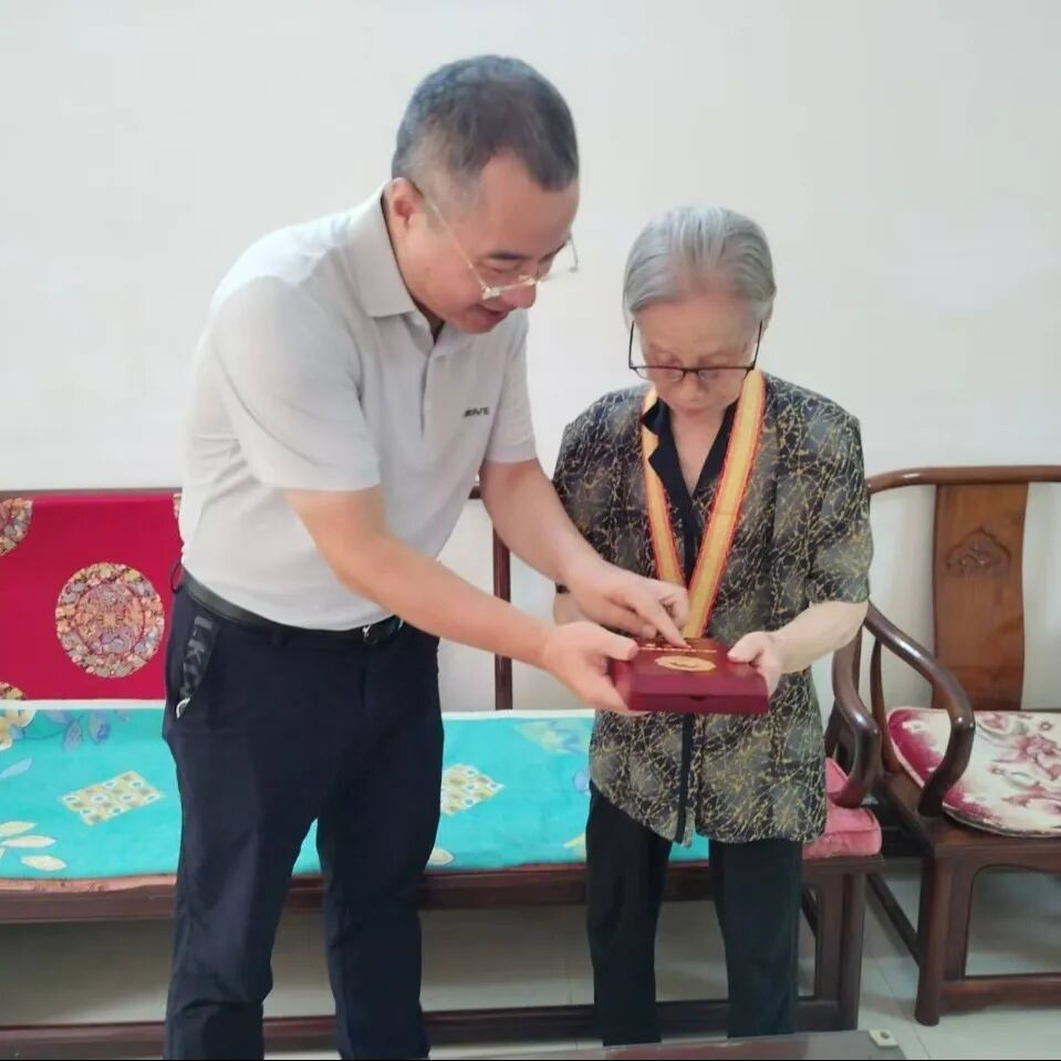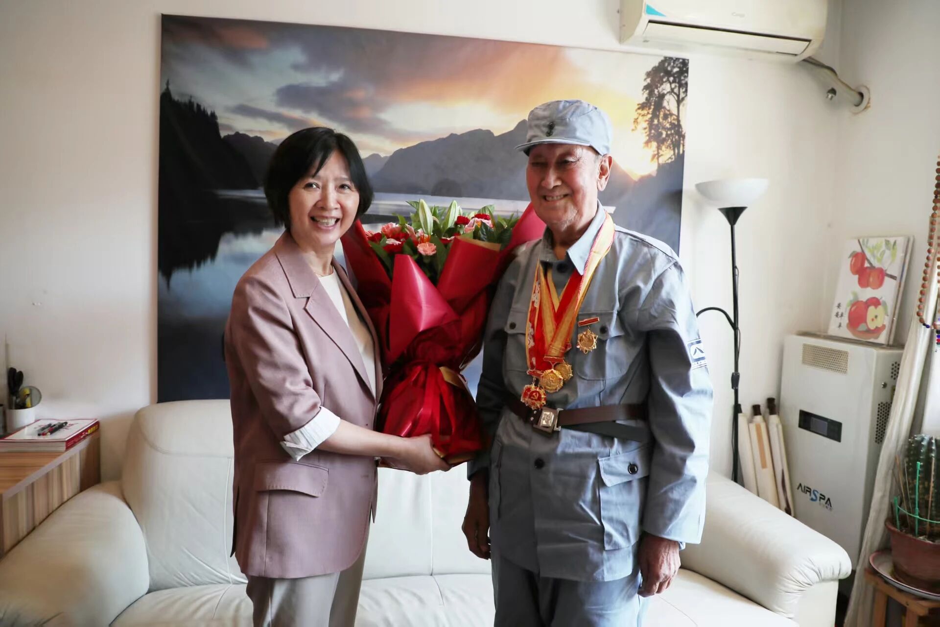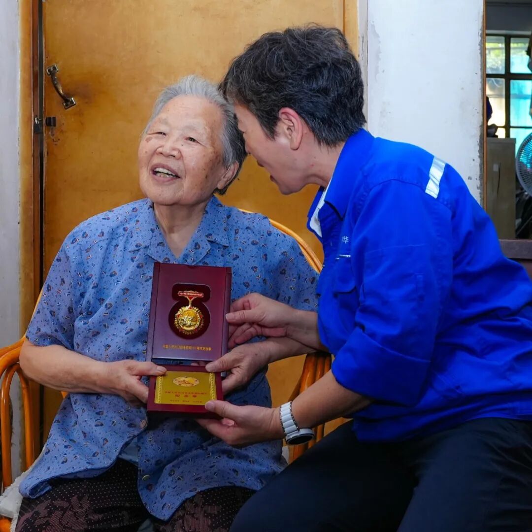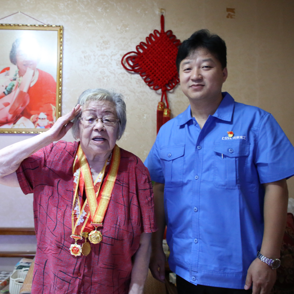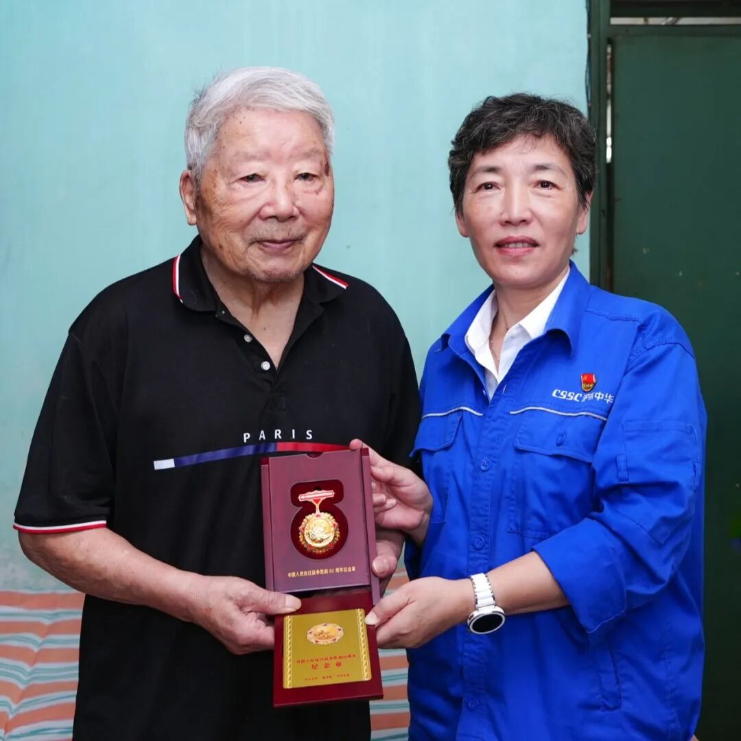 在纪念中国人民抗日战争暨世界反法西斯战争胜利80周年之际,中国船舶集团有限公司党组副书记、董事贾海英走访慰问抗战老兵焦英杰,颁发“中国人民抗日战争胜利80周年”纪念章,并代表集团公司党组向他致以崇高敬意和诚挚问候。