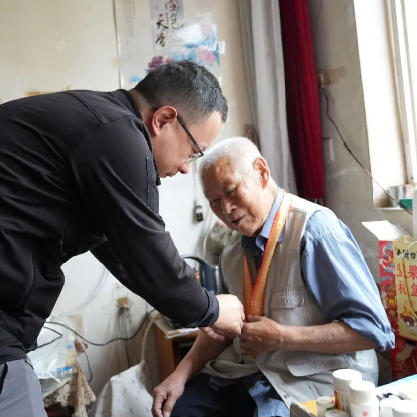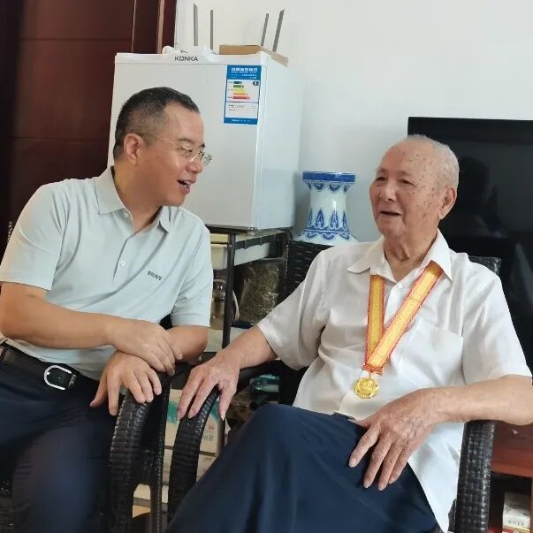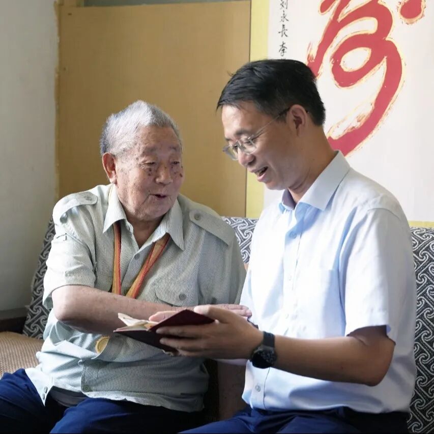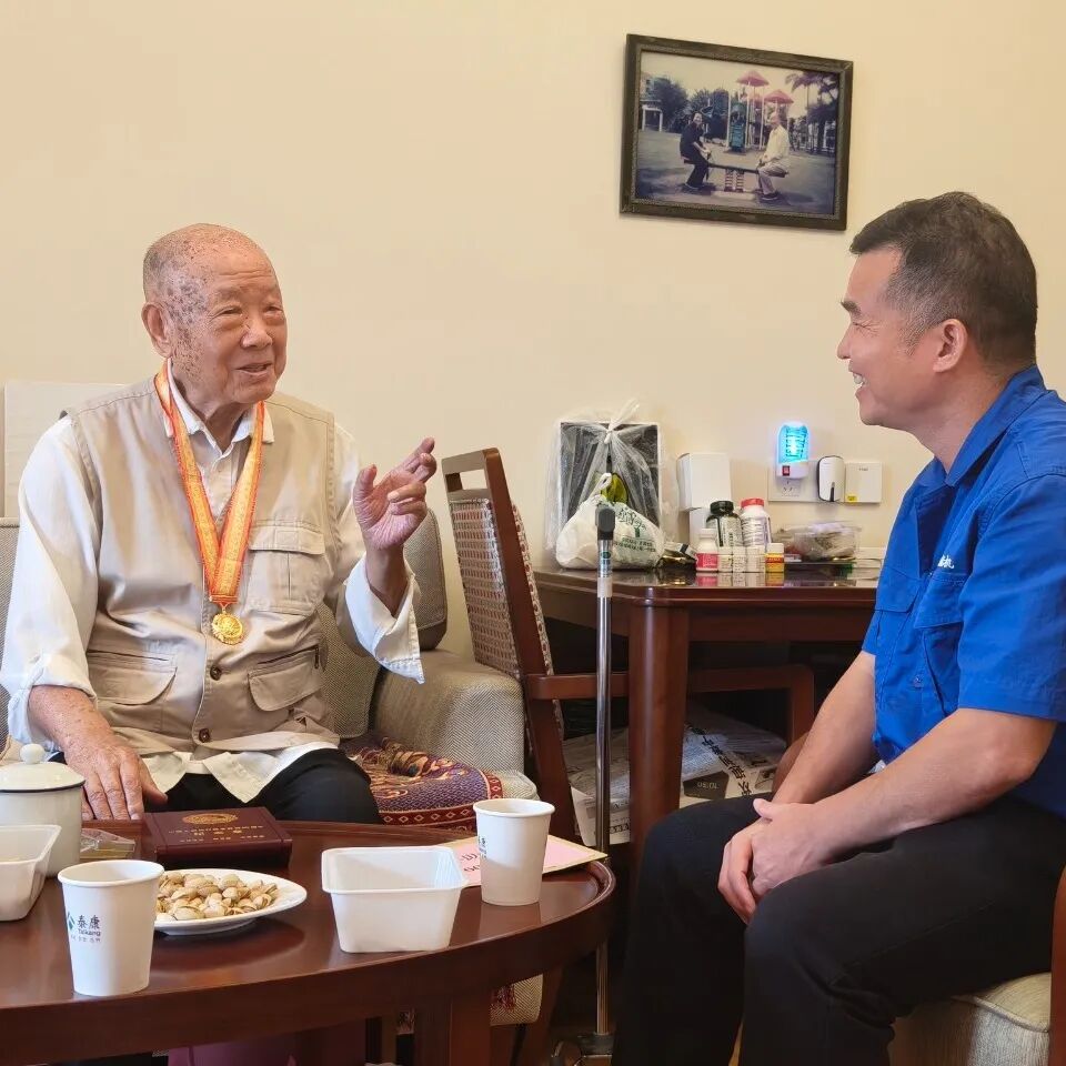 贾海英在焦英杰家中与其促膝交谈,悉心询问他的身体状况和生活情况,专注听他讲述抗战时期的峥嵘岁月,频频点头回应并追问细节,衷心地感谢他在抗战时期作出的巨大牺牲和贡献,并祝愿他身体健康、福寿绵长;同时,叮嘱总部各部门及相关单位要及时关心、了解抗战老兵的生活和工作情况,使大家真切感受到集团公司党组的关怀与温暖。