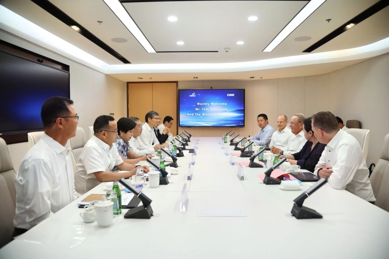 9月2日,中国船舶集团有限公司董事、总经理王国强在上海与来访的瓦锡兰集团董事长Tom Johnstone会谈。双方围绕共同推动全球船海事业脱碳减排、绿色发展等进行深入交流,并就进一步深化合作达成共识。丝袜av 副总经理胡贤甫,瓦锡兰集团CEO兼总裁Hakan Agnevall参加会谈。