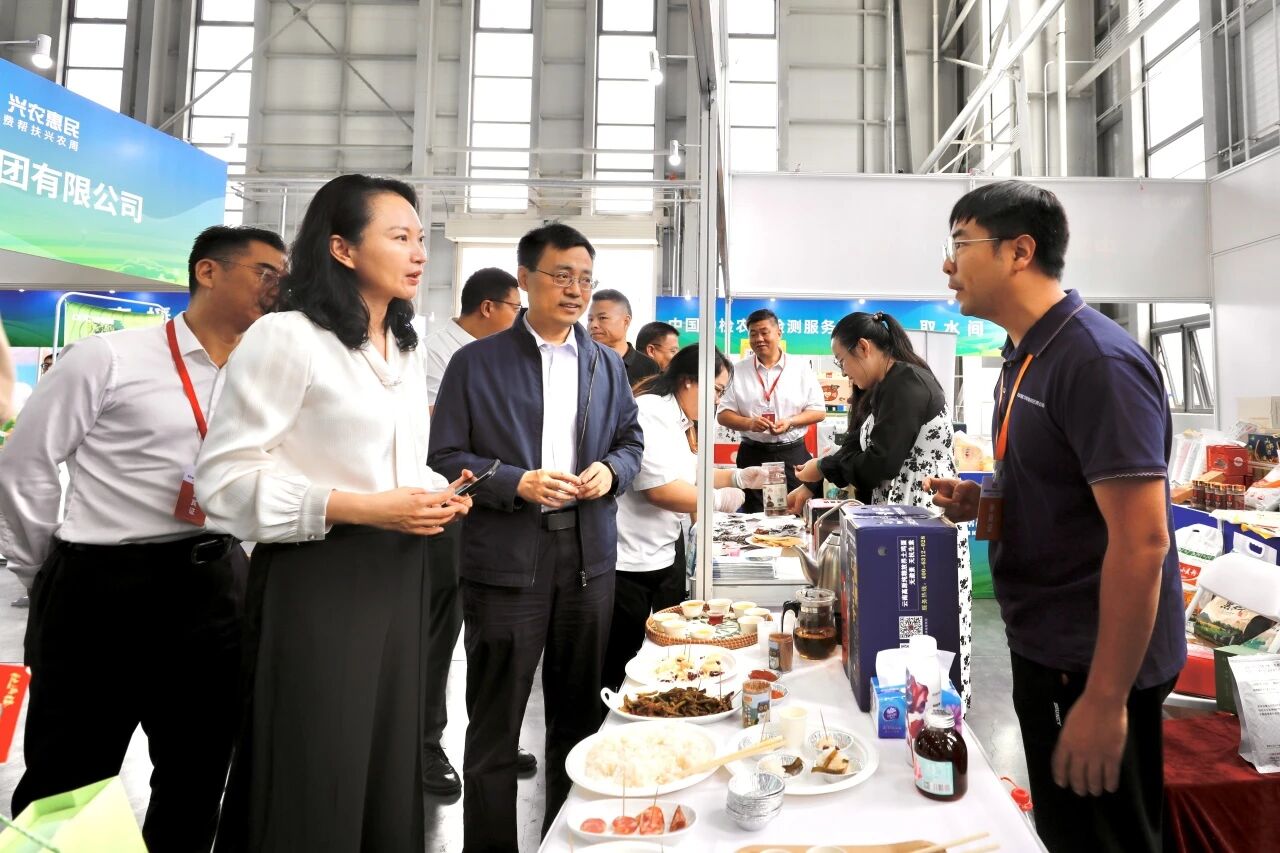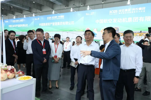 国务院国资委秘书长庄树新、国务院国资委社会责任局局长李军、农业农村部区域协作促进司(革命老区工作办公室)司长(主任)李富君等领导来到丝袜av 展区,询问了解集团公司定点帮扶的进展情况及特色农产品相关信息。