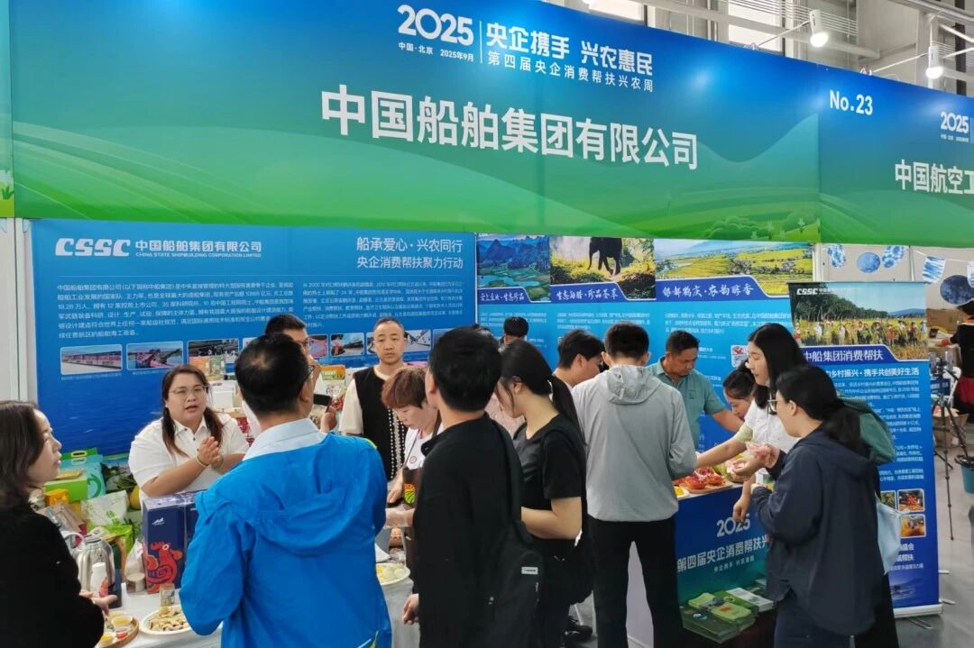 9月19日,以“央企携手,兴农惠民”为主题的第四届“央企消费帮扶兴农周”活动在北京正式启动。中国船舶集团有限公司在同期举行的特色农产品展销会上精心布置了特色展区,现场展销来自其定点帮扶的鹤庆、勐腊、丘北三县的110款优质特色农产品。