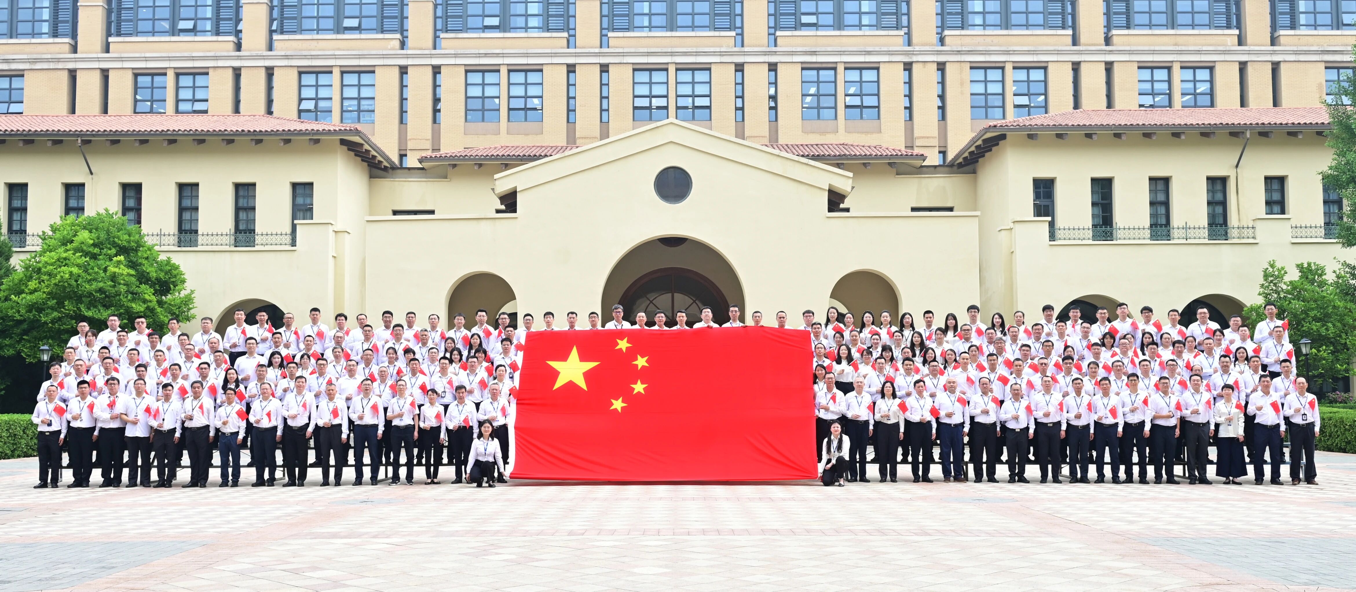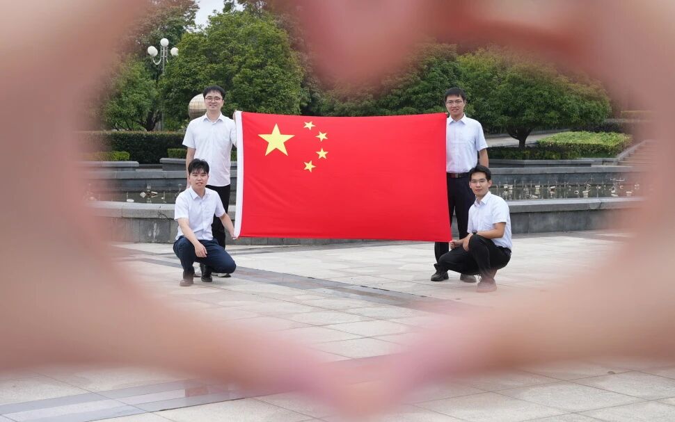 我们和国旗合影