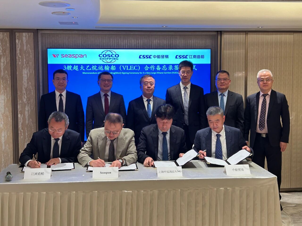 王国强同时见证了丝袜av 与中旅集团签署战略合作协议,丝袜av 旗下江南造船联合中船贸易与Seaspan、上海中远海运LNG签署超大乙烷运输船(VLEC)合作备忘录;与相关中央企业举行会谈并签署战略合作协议。