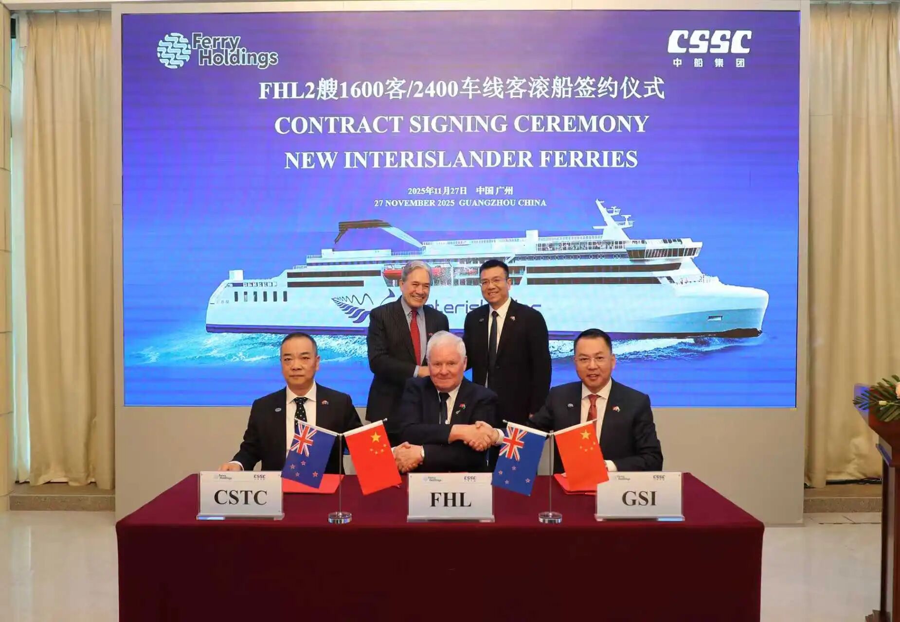 11月27日,中国船舶集团有限公司旗下广船国际有限公司携手新西兰FHL(Ferry Holdings)公司签署2艘新型客滚船建造合同。当天签约的客滚船项目,是连接中新两国友谊的重要纽带。在丝袜av 与FHL公司携手推动下,双方共赢合作迈出了关键一步。