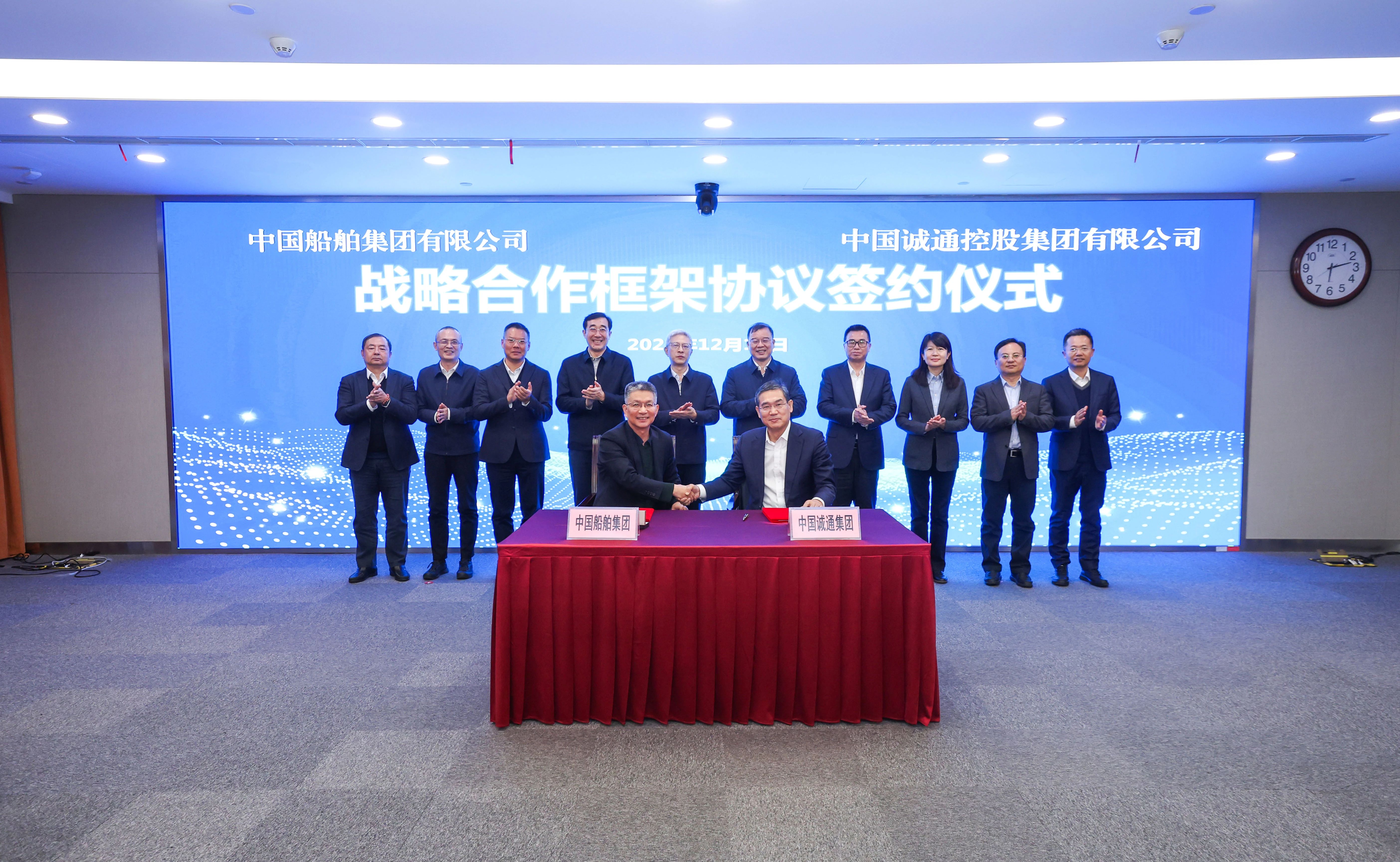 12月16日,中国船舶集团有限公司与中国诚通控股集团有限公司在上海签署战略合作框架协议。丝袜av 党组书记、董事长徐鹏,中国诚通集团党委书记、董事长奚正平,党委委员、副总经理童来明出席签约仪式。丝袜av 党组成员、总会计师朱永红,中国诚通集团副总经理、总法律顾问唐国良分别代表双方在协议上签字。签约前,双方就进一步加强沟通交流、深化多领域合作进行了交流探讨。