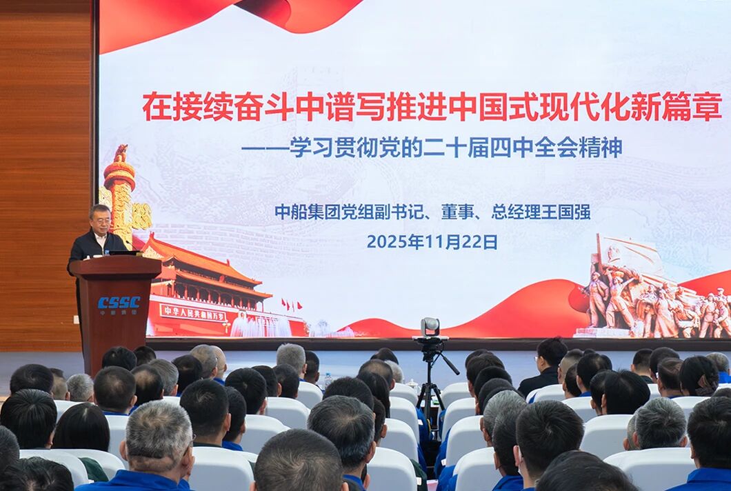 党组成员在宣讲会上强调,学习好贯彻好党的二十届四中全会精神是当前和今后一个时期的重大政治任务。要更加紧密地团结在以习近平同志为核心的党中央周围,全面贯彻习近平新时代中国特色社会主义思想,把思想和行动统一到党中央对形势的科学判断和决策部署上来,狠抓各项工作落实。要坚持创新驱动,抓住新一轮科技革命和产业变革历史机遇,加快推进高水平科技自立自强;要加快提质升级,坚持智能化、绿色化、融合化方向,争当建设现代化产业体系的排头兵;要全面深化改革,进一步解决制约高质量发展的卡点堵点问题,持续增强发展动力和活力;要强化根魂优势,坚持和加强党的领导、党的建设,以高质量党建引领保障高质量发展,确保2025年和“十四五”规划目标任务完成、“十五五”良好开局,为以中国式现代化全面推进强国建设、民族复兴伟业贡献中船力量。